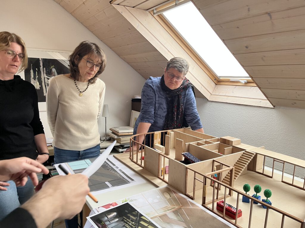 Die Bilder geben einen Eindruck „hinter den Kulissen“. Die Journalistin Lisamarie Haas Baum hat uns einen Nachmittag bei einer Team Sitzung und der Arbeit am Modell gemeinsam mit Architekt Suleiman Mukarker von 121 Architekten begleitet.